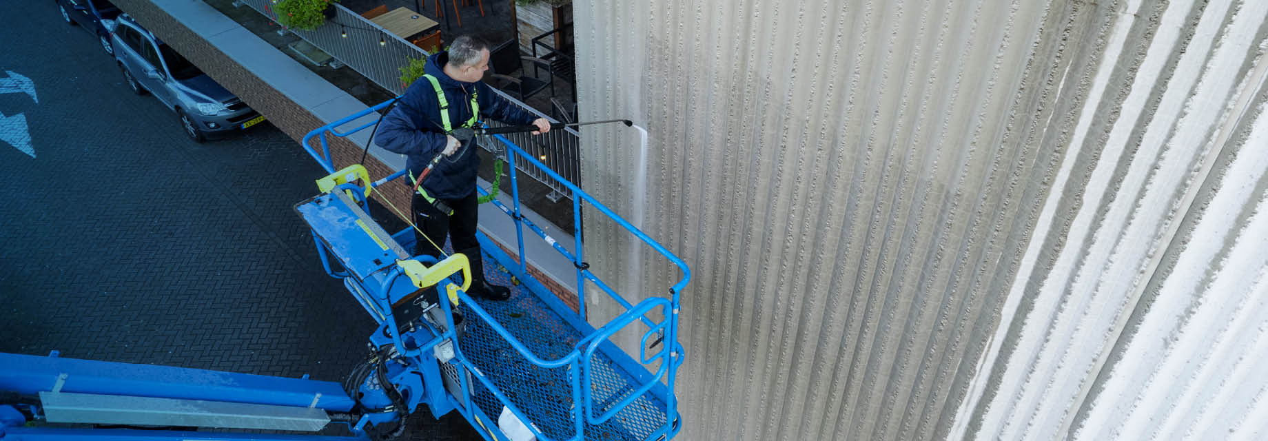 Hogedrukreiniging wordt vooral toegepast op stevige ondergronden die in goede staat zijn. Daarom is vooraf altijd een inspectie nodig, zodat duidelijk is of de gevel en het voegwerk geschikt zijn voor deze aanpak. Voor bedrijfspanden is dit vaak een praktische oplossing, omdat grote oppervlakken efficiënt kunnen worden gereinigd met beperkte hinder voor de dagelijkse werkzaamheden.